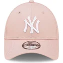 Verstellbare rosa Kappe mit gebogenem Schirm und weißem Logo 9FORTY League Essential der New York Yankees MLB von New Era