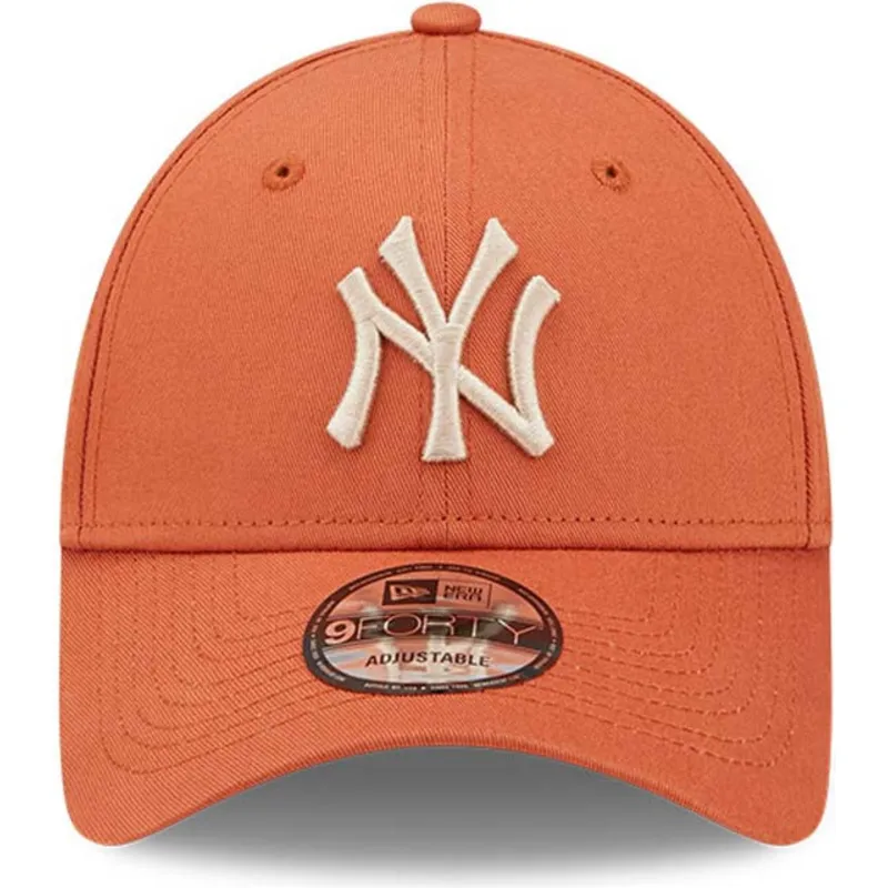 Verstellbare orangefarbene Kappe mit gebogenem Schirm und beigem Logo 9FORTY League Essential der New York Yankees MLB von New E
