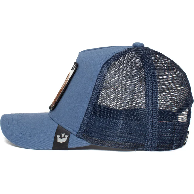 Die blaue Trucker-Kappe Big Bear Truckin The Farm von Goorin Bros. ist ein ikonisches Stück, das im Kleiderschrank eines jeden Erwachsenen, der urbanen und lässigen Stil liebt, nicht fehlen darf. Mit ihrem Unisex-Design lässt sich diese Kappe perfekt mit jedem Outfit kombinieren und verleiht ihr eine einzigartige Note von Persönlichkeit. Der Snapback-Verschluss garantiert eine perfekte Passform für jede Kopfgröße, während der aufgestickte Bär auf der Vorderseite ihm eine lustige und originelle Note verleiht.
