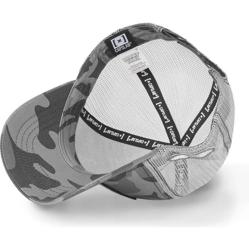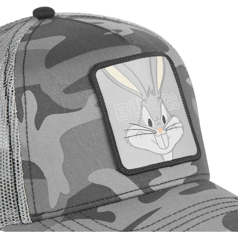 Die graue Trucker-Kappe Bugs Bunny LOO8 PEO1 im Tarnmuster von Capslab ist perfekt für alle, die ein vielseitiges Accessoire mit Persönlichkeit suchen. Durch sein Unisex-Design ist es ideal für alle, die ihrem Outfit einen Hauch von Stil verleihen möchten. Der Snapback-Verschluss sorgt für eine perfekte Passform und passt sich der Größe jedes Kopfes an, um jederzeit Komfort zu gewährleisten.