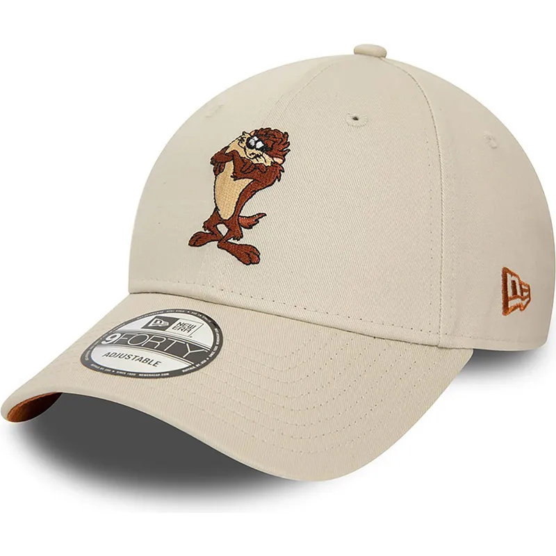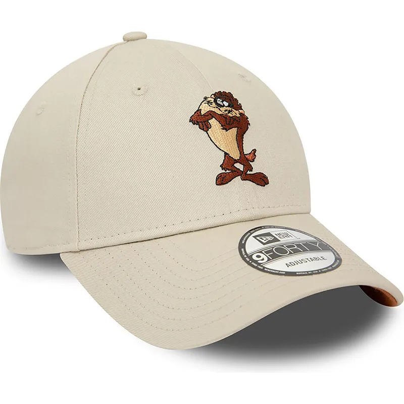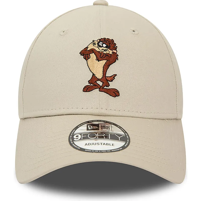 Beige verstellbare 9FORTY Kappe mit gebogenem Schirm und Tasmanischem Teufel Charakter von Looney Tunes von New Era