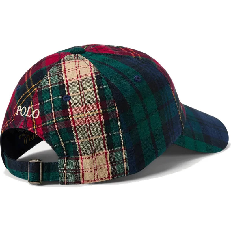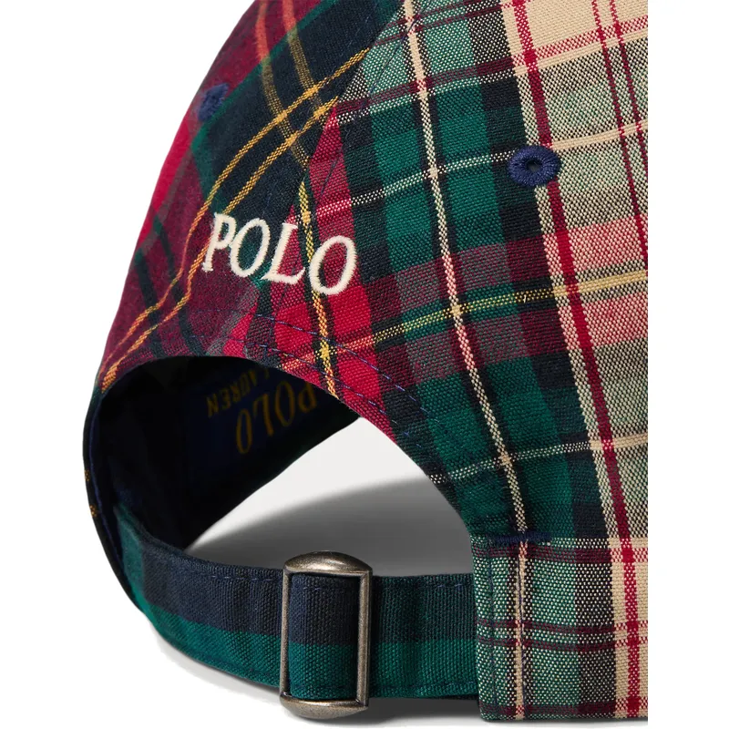 Verstellbare mehrfarbige Kappe mit gebogenem Schirm und weißem Logo Classic Sport Plaid von Polo Ralph Lauren