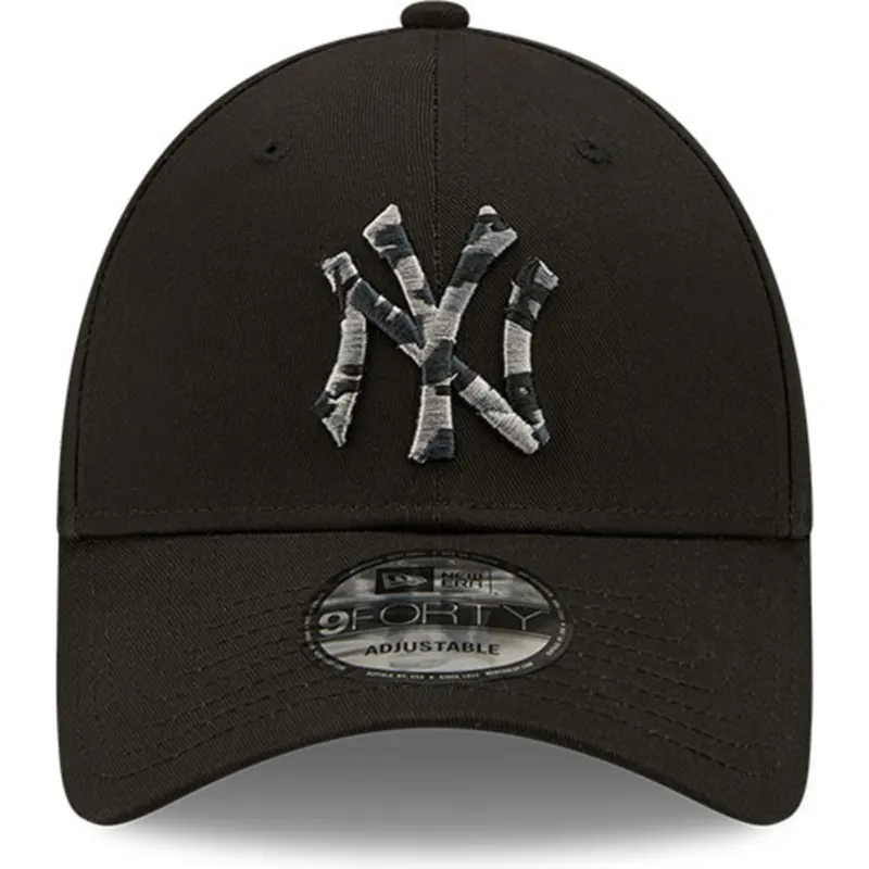New Era New York Yankees MLB 9FORTY Camo Infill verstellbare schwarze Kappe mit gebogenem Schirm