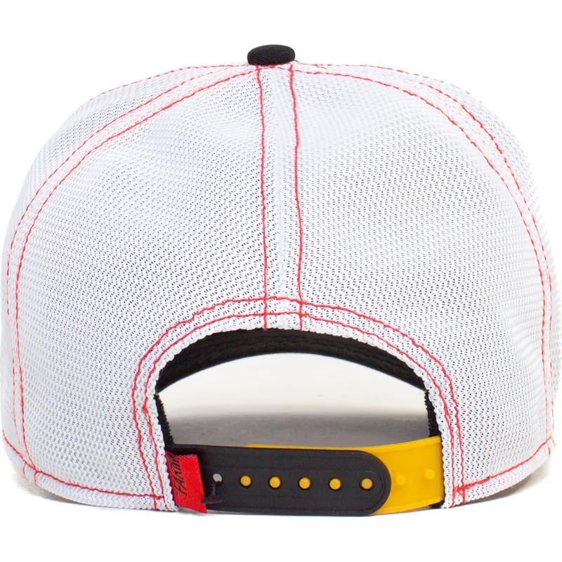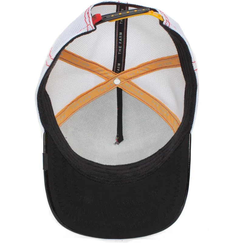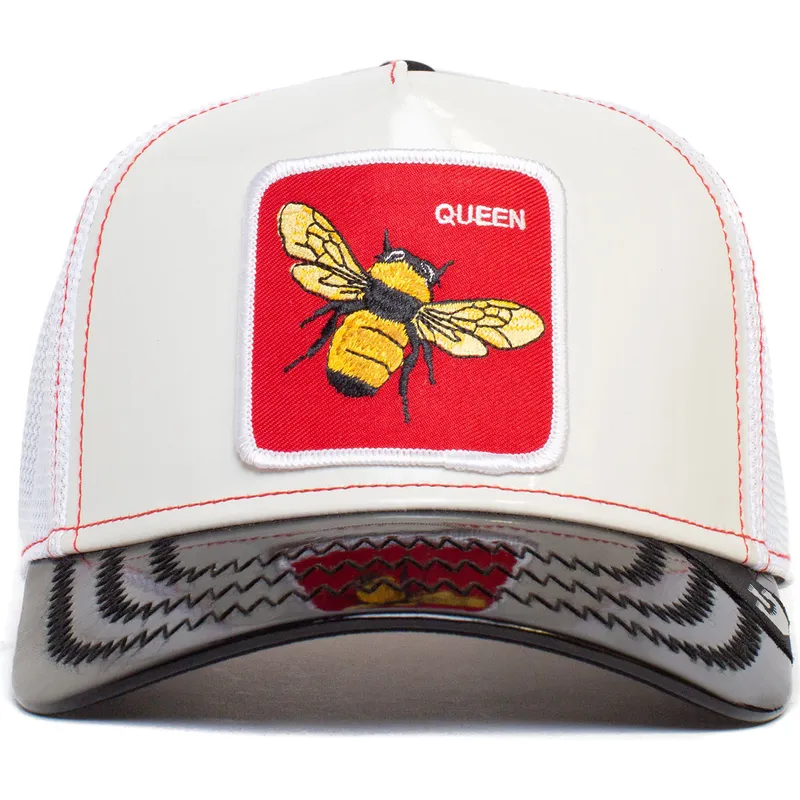 Schwarz-weiße Trucker-Kappe Biene The Red Queen Patent Leather The Farm von Goorin Bros.