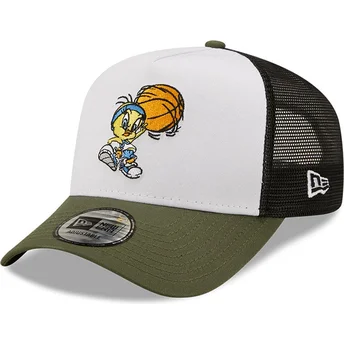 Weiße, schwarze und grüne A-Frame Character Sports Trucker-Kappe mit Tweety Looney Tunes von New Era.